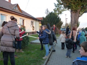 A nemrégiben felállított TELEPÜLÉSKÉP MEGÁLDÁSA a hivatal épülete előtt, majd FÁKLYÁS FELVONULÁS a faluházba, ahol folytatódik a műsor: