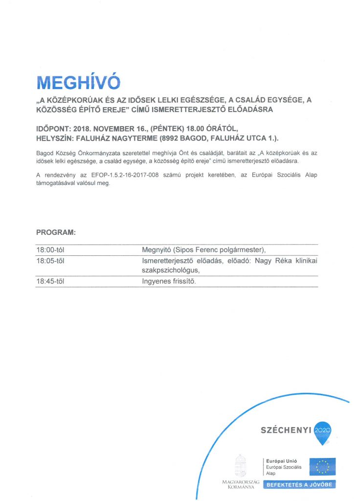 KezdőlapBagodProgramokIsmeretterjesztő előadás – 6. rész. << Vissza Ismeretterjesztő előadás – 6. rész. Időpont: 2018. november 16. péntek