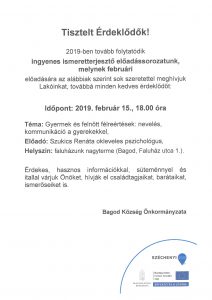 KezdőlapBagodProgramokIsmeretterjesztő előadás – 9. rész. << Vissza Ismeretterjesztő előadás – 9. rész. Időpont: 2019. február 15. péntek